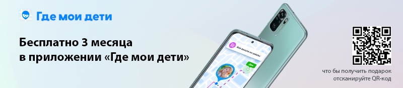 «Где мои дети» – это семейный GPS-трекер для безопасности детей и родительского контроля. Отсканируйте QR-код и получите подарок — 3 месяца бесплатно в приложении «Где мои дети‎». Акция действуют с 20 августа по 19 сентября 2021 года.